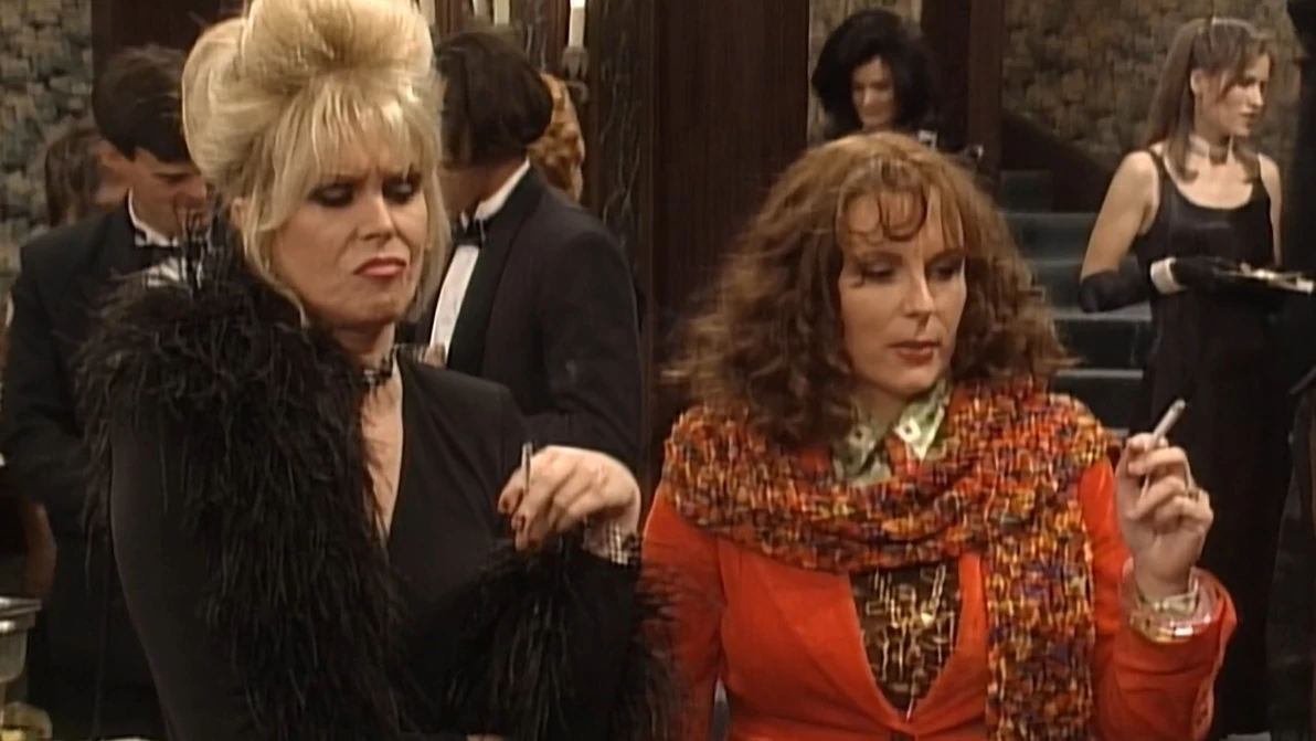 - This episode features a crossover with the British comedy Absolutely Fabulous which stars Jennifer Saunders as Edina Monsoon and Joanna Lumley as Patsy Stone Jennifer Saunders also co-wrote the episode.